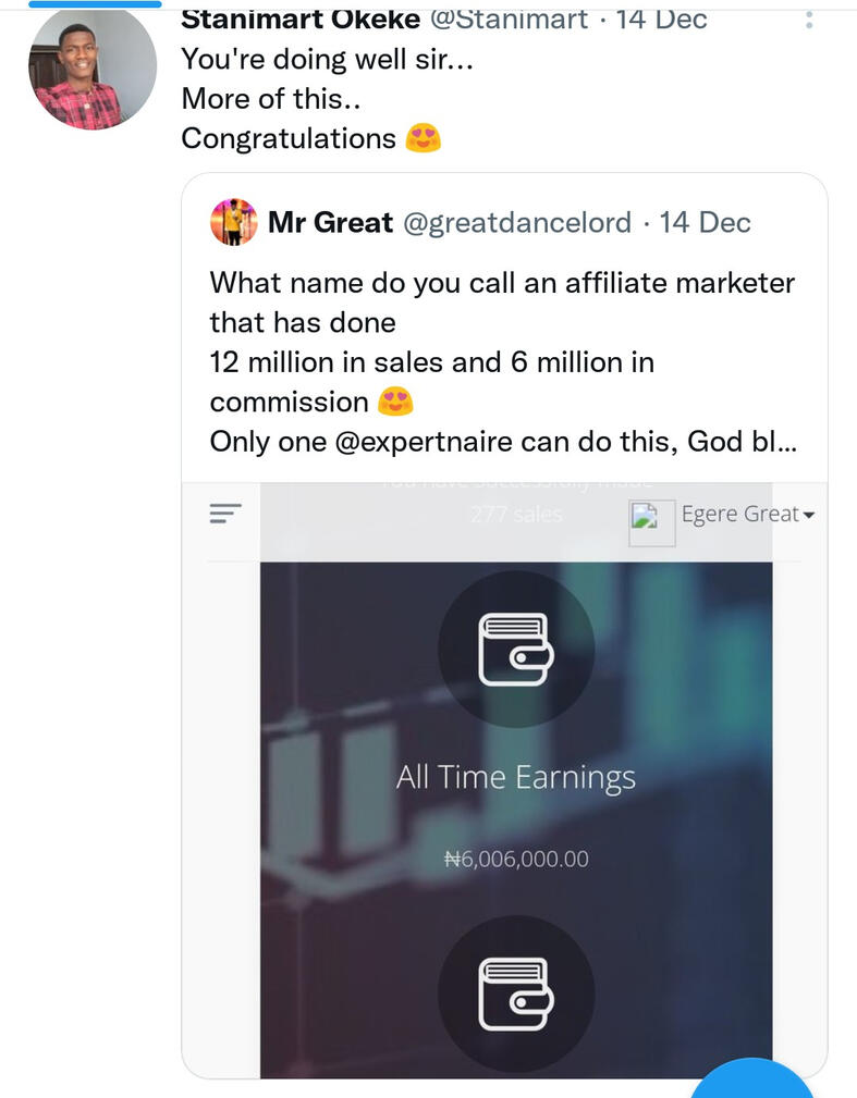 What's Expertnaire?Expertnaire is an online marketplace that sells DIGITAL products that other people other than Affiliates created. And these products don’t have stock.That is to say, these products can’t finish because they’re DIGITAL (E-books, Videos)Examples of such products: How to relocate to Canada even with a low IELTs score, Viral YouTube Monetization, Natural Weight Loss, Pain-free Childbirth, Real Estate marketing secrets, Copywriting course, Freelancing, Facebook & Google Ads course and so so many more…And these are products that people are looking for solution to.All these different products have their specific sale commission.That is to say: a product on weight loss may pay you as much as 50% while a product on “make money” can pay you as much as 40%.So we the affiliates can sell as much as we want and make as much as we can.Again, this is an automated system that once you record a sale, you get paid automatically because the system has been setup to pay you a certain commission for any successful sale!This system of making money online selling other people’s products is called AFFILIATE MARKETING.